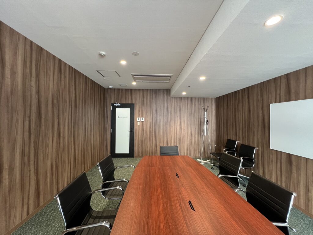 また、会議室の壁紙は木目調にしました。