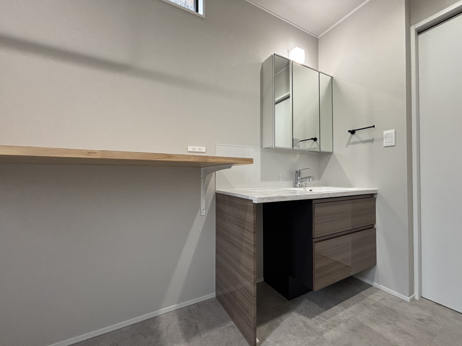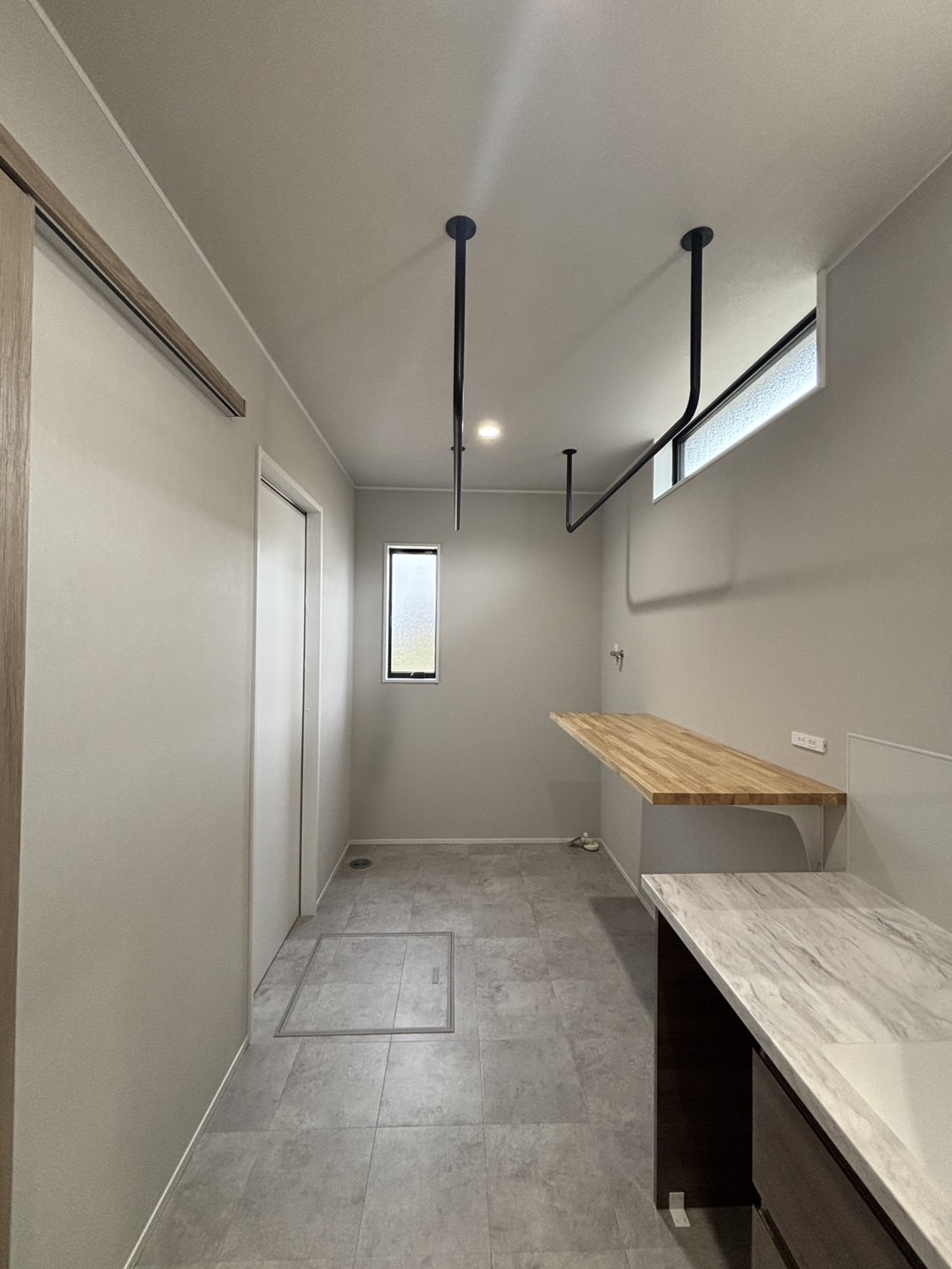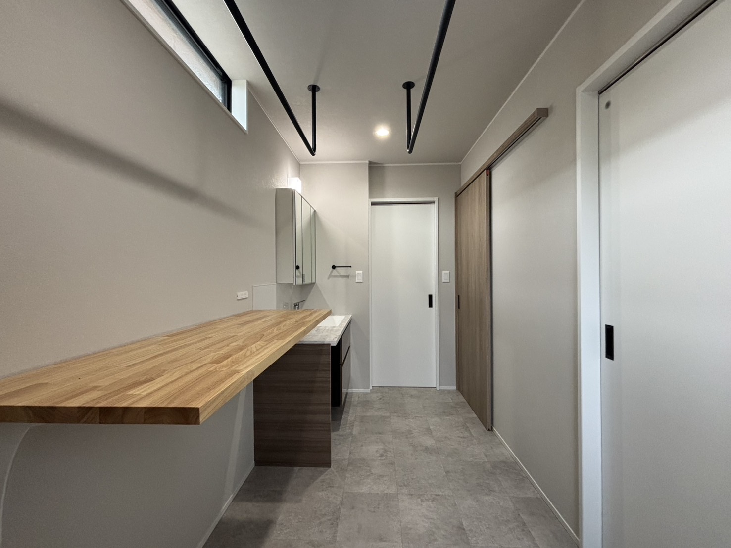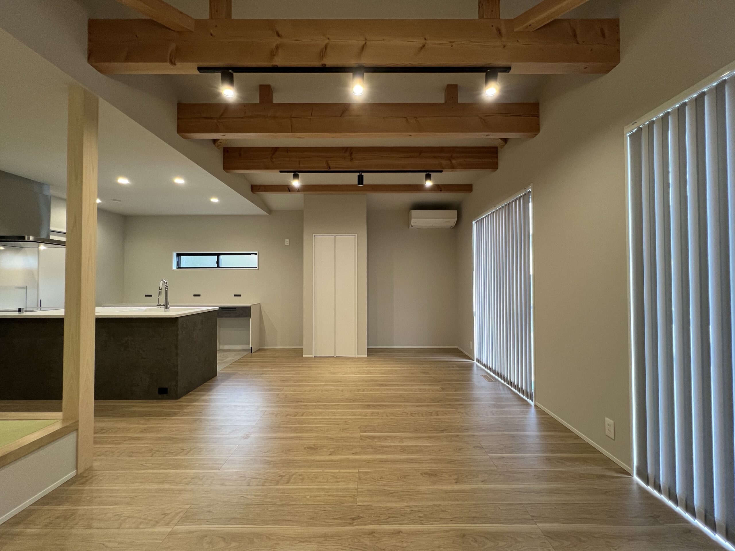 小上がりのタタミでほっと一息。 キッチンから洗面室へはスムーズな家事動線。 玄関正面にはファミクロを配置して、帰宅後の動きもストレスフリーに。